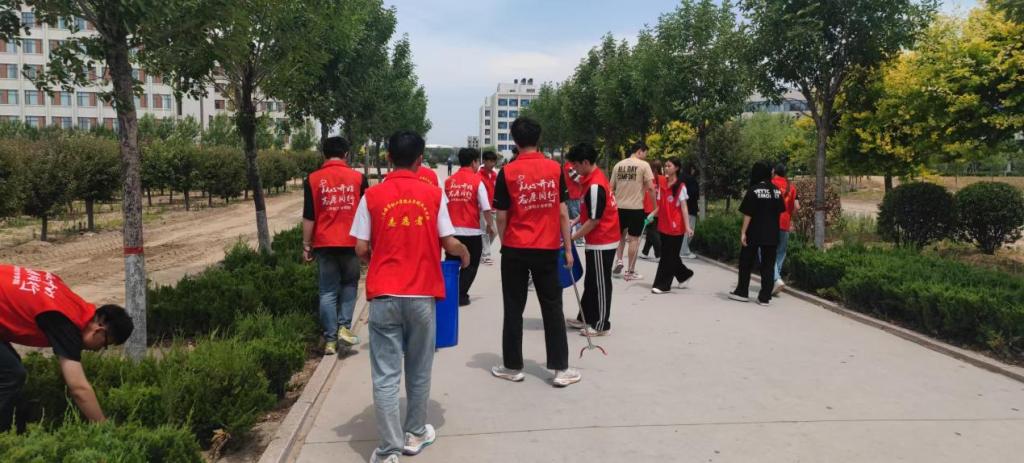 活动中,学生志愿者在校园内开展垃圾清理与分类实践。他们身穿红色马甲,手持环保垃圾袋和分类工具,以小组为单位对校园教学区、生活区、停车场等公共区域展开“地毯式”清洁。大家分工协作,仔细捡拾散落的纸屑、塑料瓶等垃圾。积极向过往的同学宣传环保知识,倡导“垃圾不落地”的好习惯。