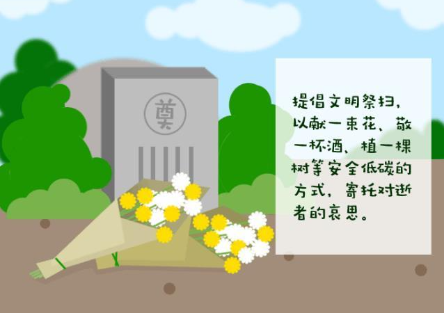 2.结合“文明出行”主题宣传活动,开展“文明祭祀,平安清明”教育。倡导生态文明的祭祀新风。扫墓是对祖先和已故亲人表示深切怀念的重要方式,倡导鲜花祭祀、植树祭祀、家庭祭祀等祭祖仪式,通过献一束花、敬一杯酒、植一棵树以及清扫墓碑、颂读祭文、传诵祖训等健康的方式寄托哀思,养成“不乱扔垃圾、不损坏树木、不使用明火、不乱放鞭炮”的祭扫习惯,弘扬社会新风气。
