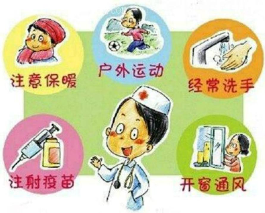 4.预防传染病:春季容易造成很多疾病的发生,为了加强传染病的防范意识,预防传染病的总体原则应为以下几点:1.加强体育锻炼,増强体质,提高身体免疫力。2.居家、教室注意经常开窗通风,保持空气流通。3.尽量不到或少到人群密集、空气不流通的场所。4.合理饮食,注意多饮水,多食蔬菜水果,少食辛辣食物。5.适当采取预防性服药措施。6.尽量不要到卫生条件差,没有消毒设施的小餐馆用餐。7.针对性开展预防接种。