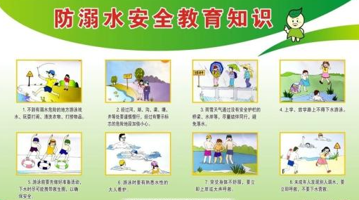 5.防溺水教育:家长要做好预防溺水等安全事故的家庭教育。为了防止校园外意外伤害事故的发生,我院开展了以“生命第一,预防溺水”为主题的安全教育。要切实把孩子的防溺水等安全教育和监护工作放在心上,要经常提醒孩子,不私自结伴去溪边、塘边、水库等水域游泳或戏水。