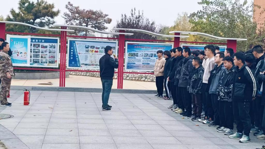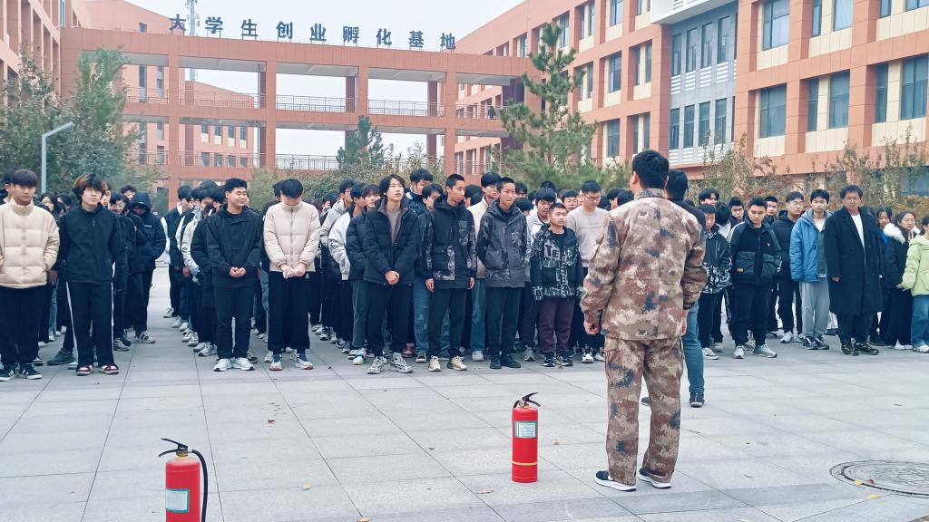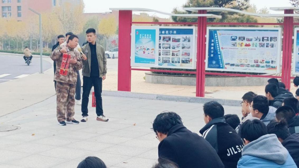 安全管理处主任助理孟凡明老师给同学们详细讲解了各类灭火器的使用方法、适用范围、注意事项以及发生火灾如何逃生等内容,并指导学生代表现场使用灭火器,让同学们能够按照正确的方式方法使用灭火器。