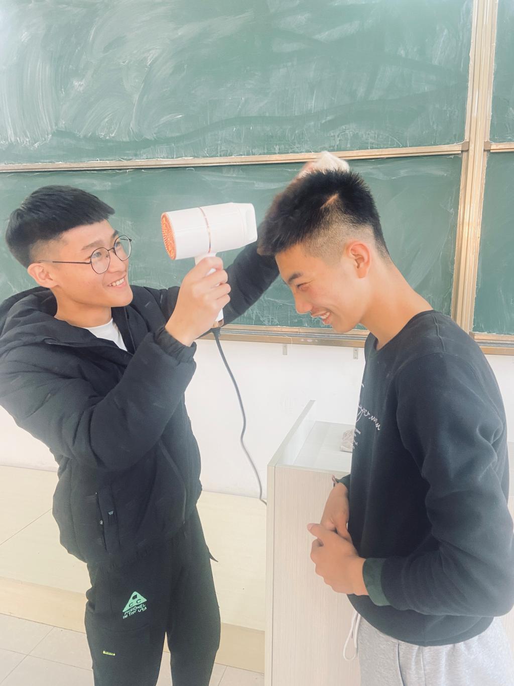 此次活动,结合当前疫情防控的工作要求,最大限度的减少人员聚集,义务理发地点选在环境较为宽敞的3313大教室,并对活动现场进行了充分消毒,维护好现场秩序。下午14时,爱心理发师们认真、热情地接待了每一位需要剪发的同学,并实时询问同学的修剪需求,为同学剪出心仪的发型,现场一派欢乐和谐的气氛。义务剪发活动一直持续到15点30分。修剪完毕,同学们一个个清爽的发型、以一个崭新的面貌呈现在大家面前,洋溢在同学们脸上的是幸福和愉悦的笑容。
