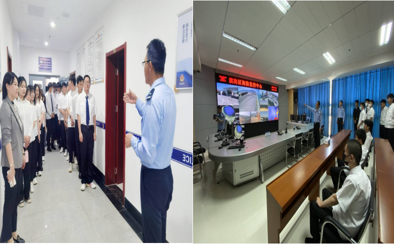 第二站来到了潍坊市海岸警察支队水上派出所,在这里大家学习了所里的党建文化,参观了警官们平时工作、学习和锻炼的地方。看到警官在忙碌之余还能把内务收拾的井井有条,还能鞭策自己不落下体能锻炼,同学们都深受鼓舞。