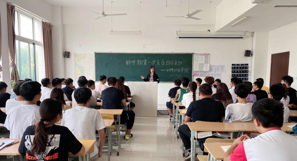 暑去秋来,金风送爽,为迎接新学期的到来,全面做好各班级教学工作,2020年09月21日下午,五年制大专学院召开了新学期第一次全体班委会议,五专学院党支部、辅导员及各班班委等60余人参加了会议。