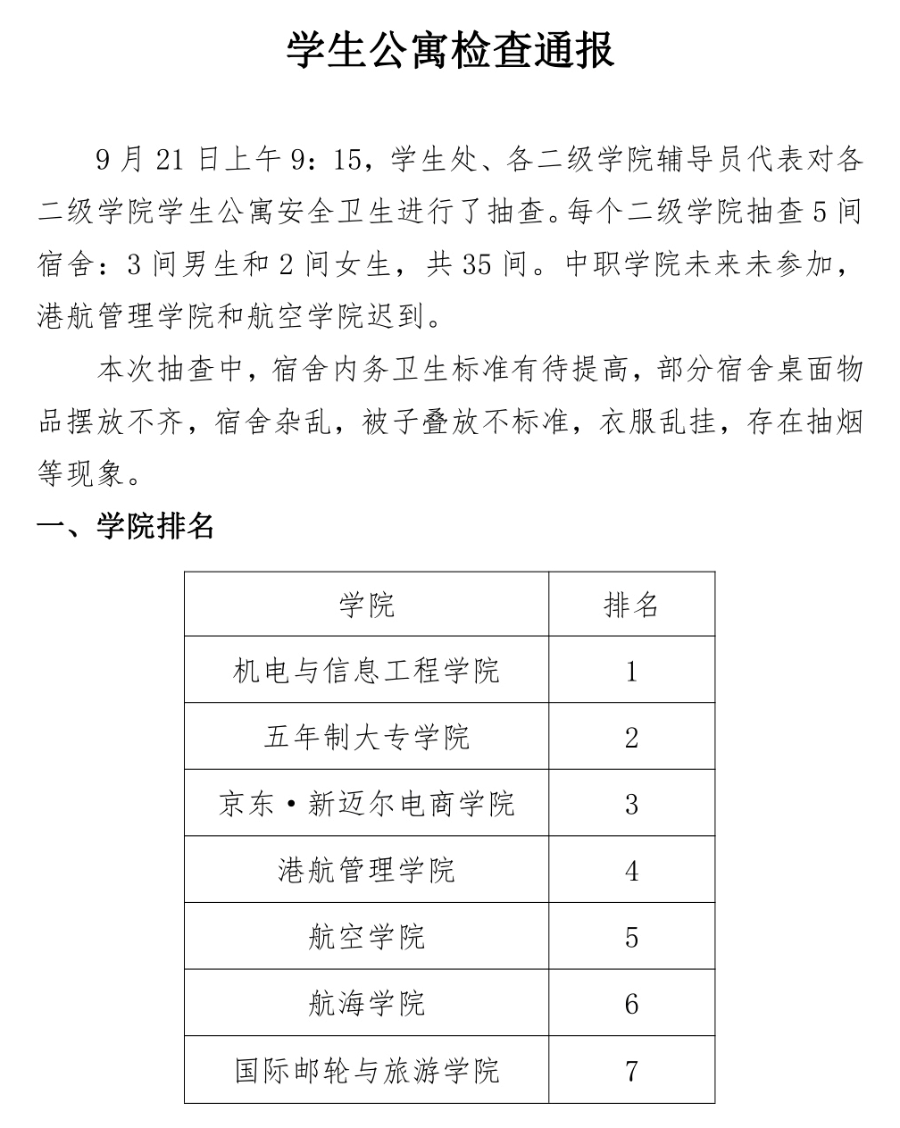 自开学以来,在学生处对全校7个二级学院检查排名中,五年制大专学院步步上升,回首过往,从倒数迈向第一,努力仍将继续。五年制大专学院全体师生将既往开来,创造辉煌!