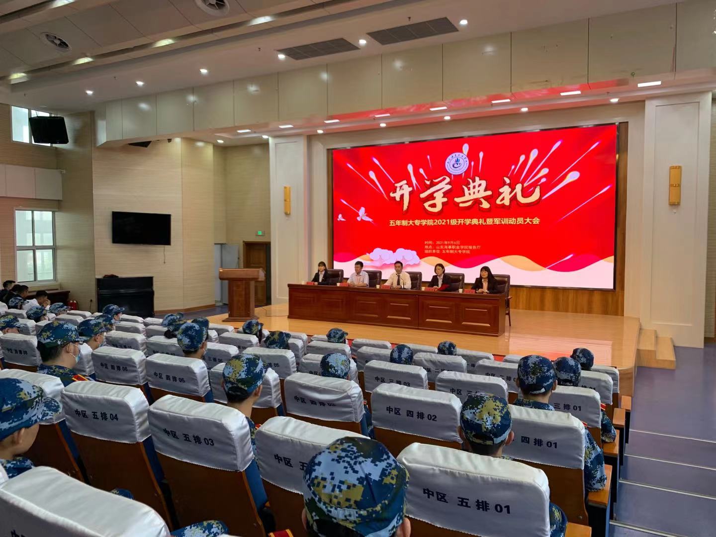 金秋送爽,丹桂飘香,又是一年开学时。9月6日上午,五年制大专学院2021级新生开学典礼暨军训动员大会在图书馆报告厅隆重举行。出席本次开学典礼的领导有山东海事职业学院副校长仉继航、五年制大专学院党支部书记丁文才、五年制大专学院副院长王春艳、国防教官田兴红、学管教师秦凤霞。还有各位辅导员、任课教师以及2021级全体同学。