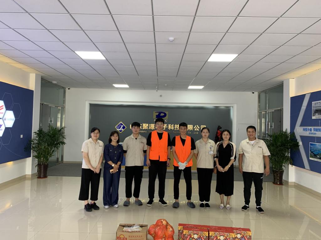 2021年9月17日下午,临近中秋佳节,五年制大专学院副院长王春艳、国防教官田兴红及实习带队辅导员邱文奇,赴聚源电子科技有限公司、山东金非通讯有限公司,慰问2017级实习生,给同学们带去月饼、水果等中秋礼物。