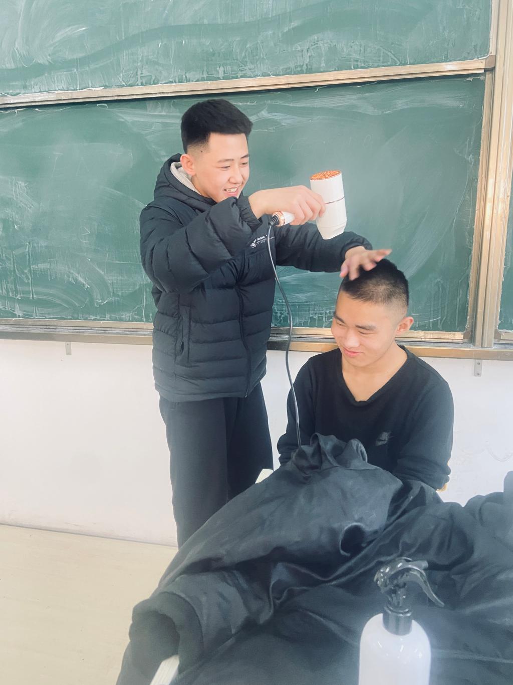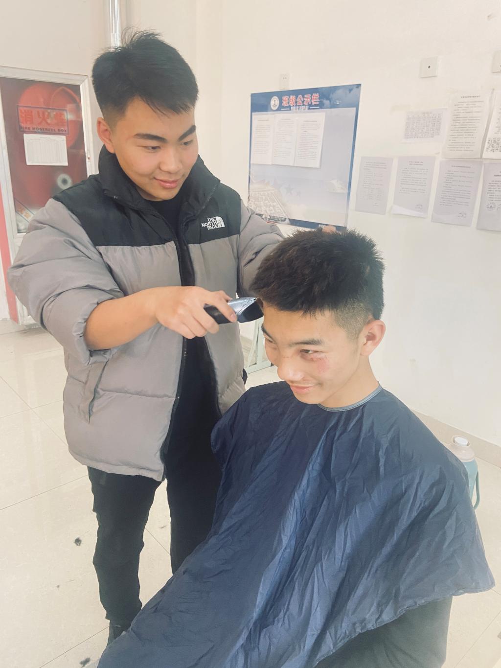 为大力培育和践行社会主义核心价值观,深化五专“生活帮”系列活动。让班级同学保持一个良好的精神面貌和舒心的心理状态,在校有家的温暖和家的味道。12月2日五专生活帮开展为贫困学生和离家较远的同学义务剪发活动,同时还开展了"安全主题"宣导活动。