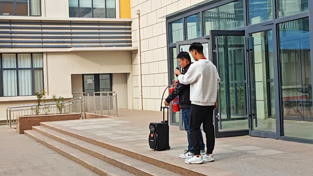 到达指定区域后刘志升老师为学生们讲解了消防安全的重要性、日常防火、火灾发生时应如何应对、自救和逃生等知识,演示了灭火器的操作方法和注意事项。