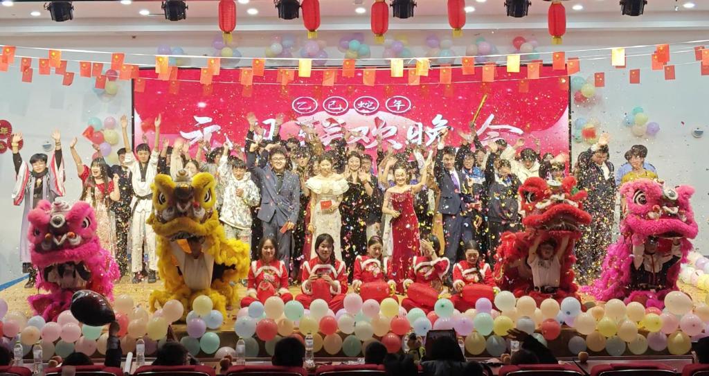 晚会尾声,全体演职人员共同登台谢幕,传递着对新的一年的美好期盼与诚挚祝福。新的一年,祝大家心怀暖阳,喜乐无忧;祝学院越来越好,再创华章。