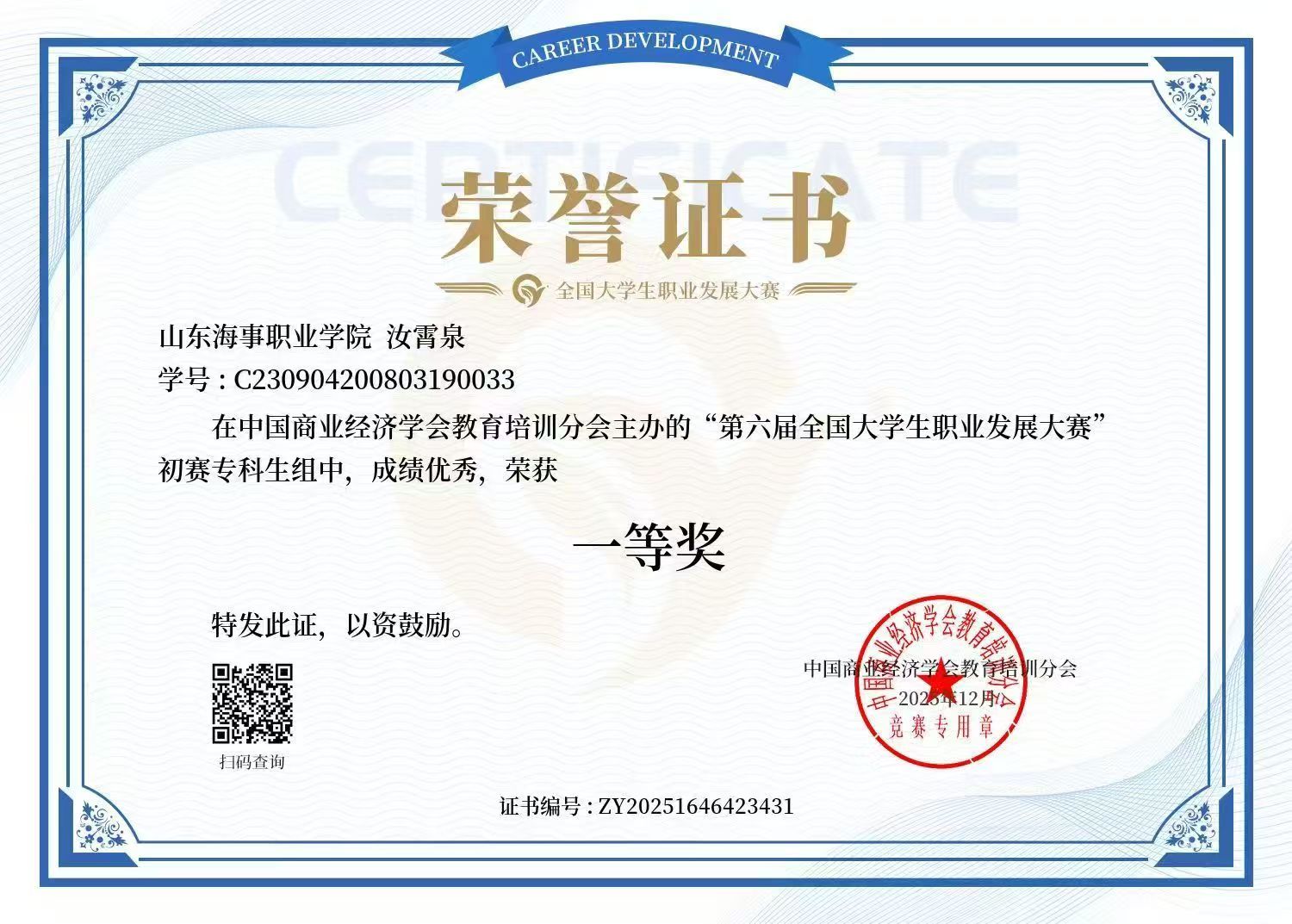 近日,由中国商业经济学会教育培训分会主办的 “第六届全国大学生职业发展大赛”初赛圆满落幕。作为聚焦学生职业规划与实践能力培育的全国性赛事,本次大赛吸引了全国各高校学子同台竞技,竞争十分激烈。我院学子凭借扎实的专业素养、清晰的职业规划和出色的综合能力脱颖而出,表现亮眼,成功斩获多项大奖。