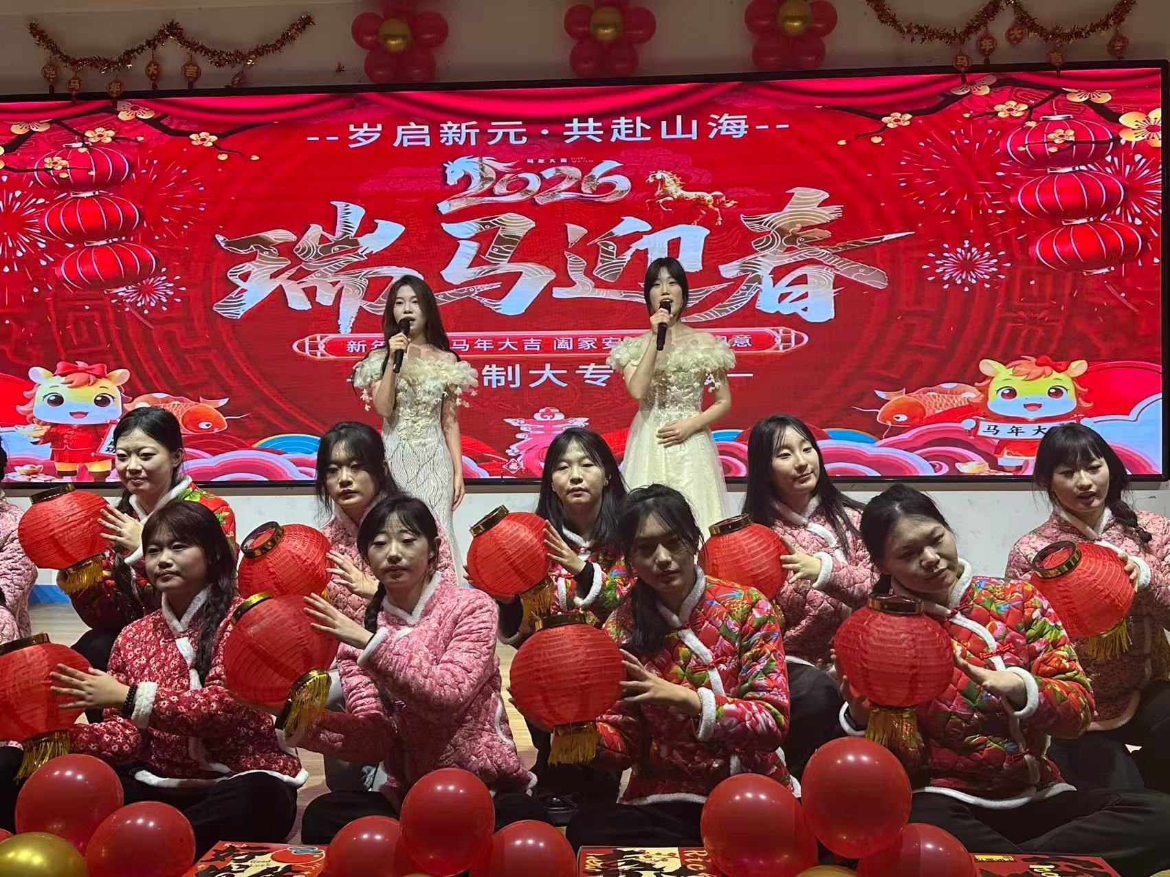 晚会现场华灯璀璨,暖意融融。歌曲演唱、舞蹈表演、器乐合奏、情景短剧等多元节目轮番上演,师生们以饱满的热情、昂扬的姿态,展现出朝气蓬勃的青春风采与锐意进取的时代精神,将对新年的憧憬与期许融入每一个精彩瞬间。幸运抽奖环节惊喜连连,欢呼声、喝彩声此起彼伏,让现场氛围持续升温。随后的颁奖环节庄重热烈,学院对2025—2026学年涌现出的“校级优秀学生”“校级优秀学生干部”“校级先进班集体”等先进个人与集体进行集中表彰,榜样的力量激励着在场师生奋勇争先、砥砺前行。