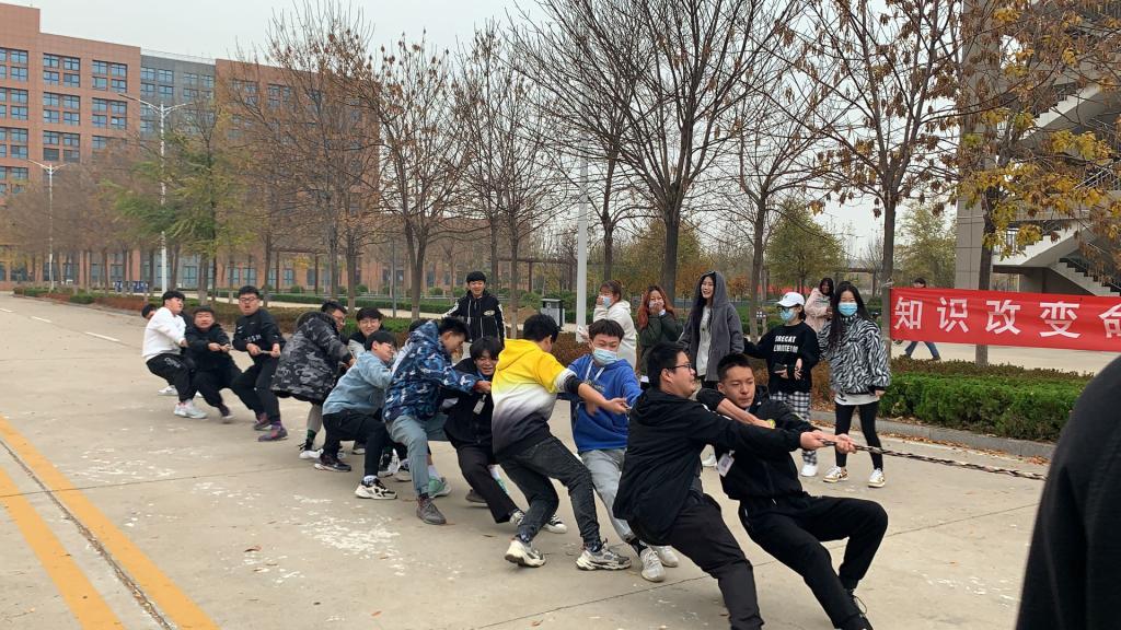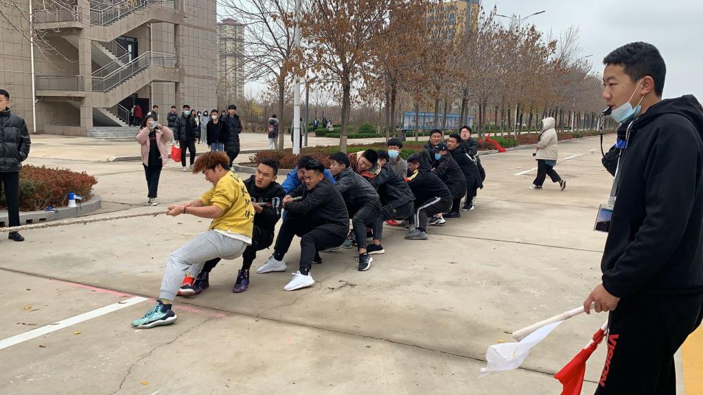 当比赛开始的哨声响起,参赛队员们全部都紧握绳子,憋足了劲把绳子往后拉。阴冷的寒风不曾摧跨队员们的意志,让我们一起为他们呐喊助威!强大的对手不会削弱队员们的信心,只会为他们加油打气!艰难的比赛不能消磨队员们的勇气,只会为他们高奏凯歌!