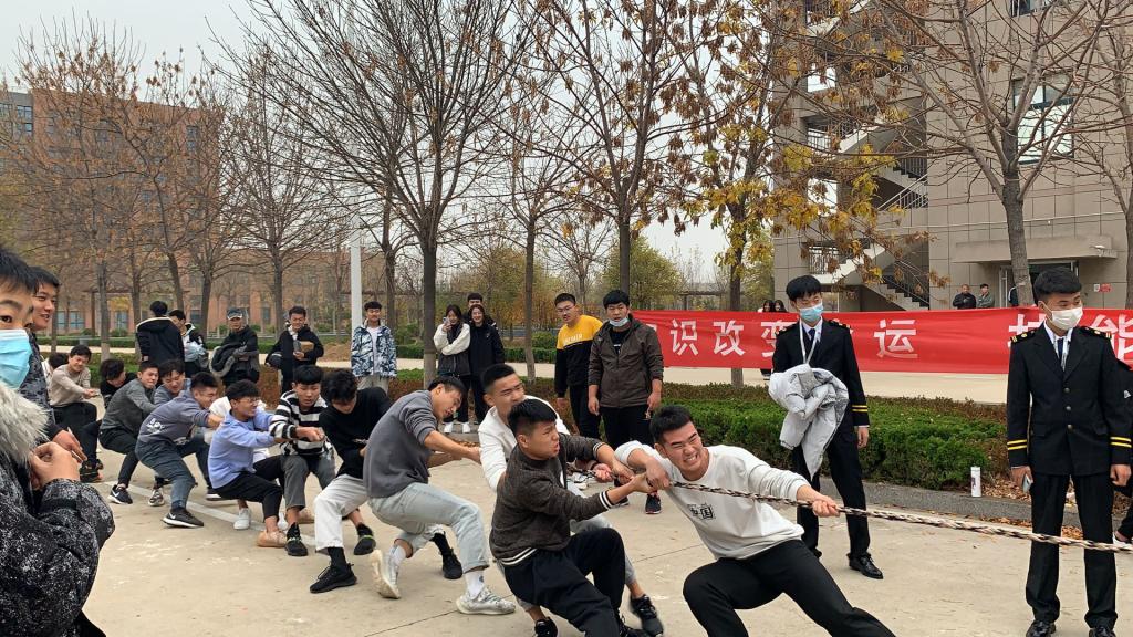 为了丰富学生的课余文化生活,增进学生之间的交流,培养学生的团队协作能力,11月17日下午,我院在中央大道举办了“山东海事职业学院五年制大专部拔河比赛”。