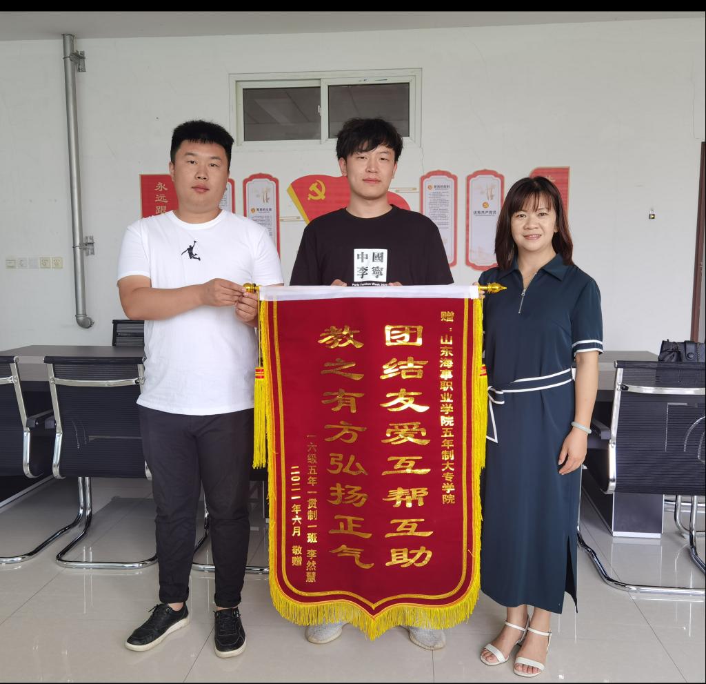 学院院长助理田兴红、辅导员邱文奇,分别代表学院接受了锦旗。