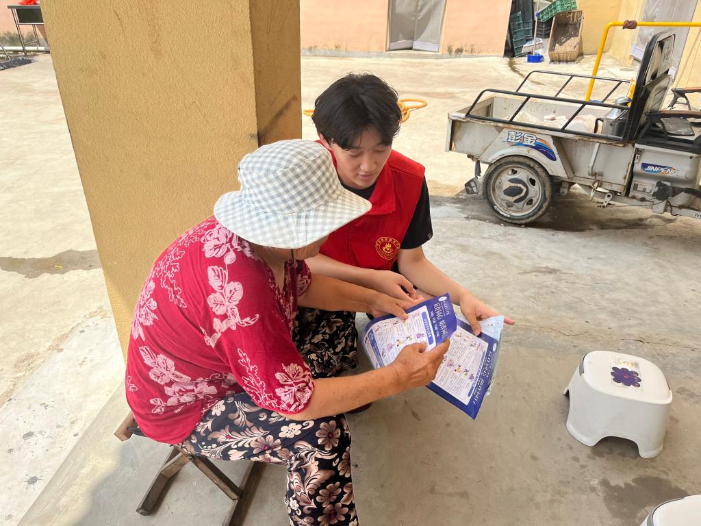 8月3日,五年制大专学院“星海”志愿服务队的志愿者们在临沂市沂水县解家官庄开展防溺水、防诈骗安全教育活动。